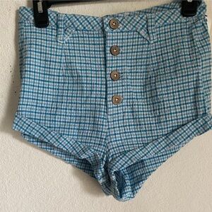 Free People Checked Out Plaid Micro Brief Style Retro Linen Blend Boho Shorts 4