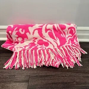 Chic Lilly Pulitzer throw with vibrant pink and cream design. Features stylish fringe accents. Like new!!