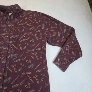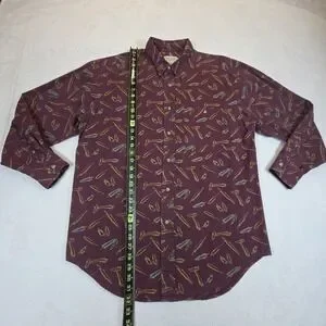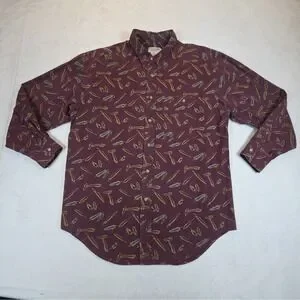 Vintage Banana Republic Safari Button Up Mens L Long Sleeve Feathers Burgundy