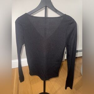 Chic black V-neck top by Aritzia. Long sleeves for versatile style. Ideal for layering or standalone wear.