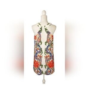 Gianni Bini dress, boho mini dress, floral halter dress, paisley print dress, summer mini dress, resort wear dress, vacation outfit, boutique style dress, colorful mini dress, statement dress, spring fashion, festival dress, feminine silhouette, designer inspired