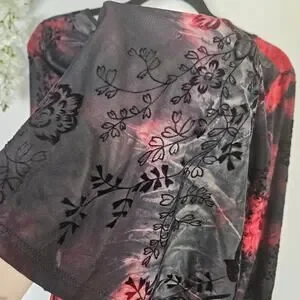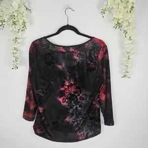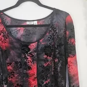 Cato Floral Red Black Burnout Top Sz Large Sheer Gothic Romantic Stretch Blouse