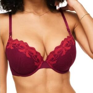 Adore Me Wine Red Lace Bra 34D Underwire Padded Lingerie Mesh NWT