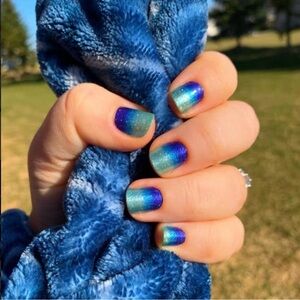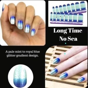 Gradient design from pale mint to royal blue. Glitter finish. Easy application.