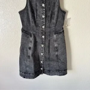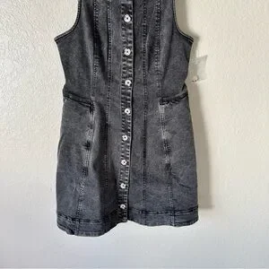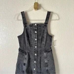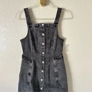 Totally timeless, this denim mini is featured in a flattering silhouette and sleeveless-style with button-front closures and wide adjustable shoulder straps.