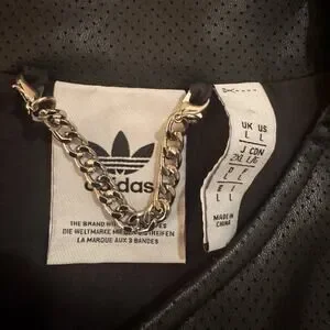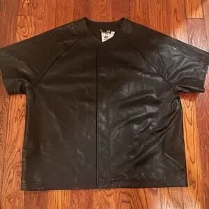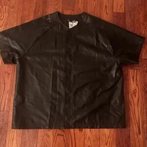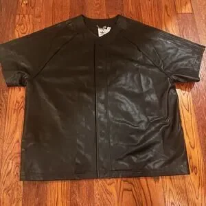 Adidas Originals Faux Leather Baseball Jersey Men's Large Black Snap Down 2024