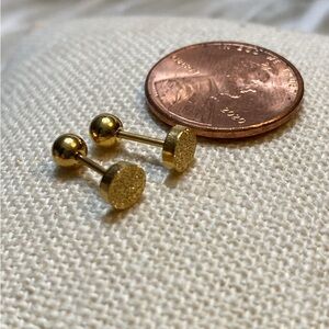 Add a touch of elegance with these stunning gold stud earrings. Perfect for any occasion. New 18k gold plated earrings. Screw on backs keep earrings in place all day. High quality stainless steel jewelry does not turn or tarnish. Can wear anywhere. Even in water. Gift box included.