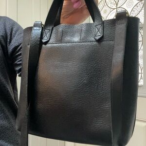 In great used shape. This is the smaller version of the classic madewell minimalist bag. Goes with everything, and will last a lifetime.