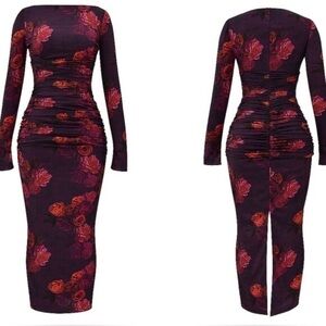 House of CB Lanetta Flower Power MSRP: $ 255.00Brand new with tags Ruched Bateau NeckLong Sleeve GeorgetteDress This dress exudes simple femininity and stylish glamour. It has a sleek silhouette with a smooth body hugging fit and we adore the gorgeous New Romantic floral print. This chic dress is so easy to wear that you'll find it being your wardrobe go-to for Seasons to come.WHERE TO WEAR:Romantic date nights, stylish dinner dates, champagne with the girls, wedding gu