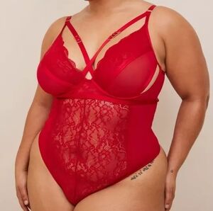 Torrid V-shape Neck Strap Lace Bodysuit Plus Size 2X Red Underwire Cups Romantic Adjustable Straps Cutout Chemise