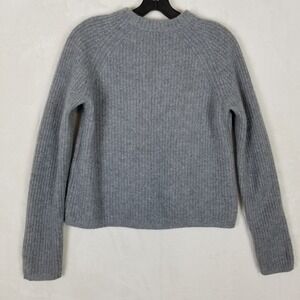 Quince 100% Cashmere Ribbed Crew Neck Sweater Gray Raglan Sleeve Womens S