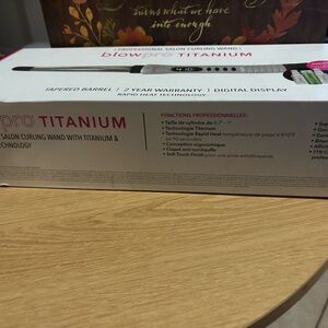 Achieve salon-quality curls with the Titanium Professional Salon Curling Wand. Featuring a sleek silver design, this curling wand offers rapid heat technology and a digital display for precise styling. Perfect for creating beautiful, long-lasting curls.