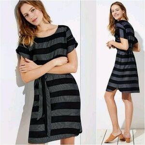 Loft M Women's Black White Striped Shift Shirt Dress Petal Sleeve