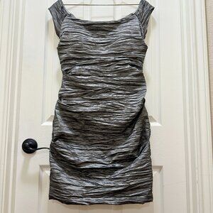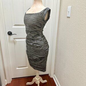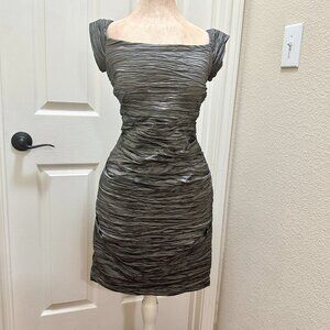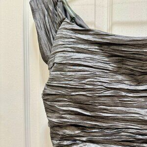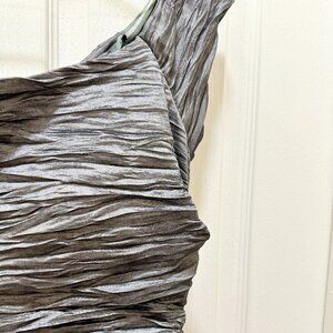 Jeanne Alexander Women's Ruched Crinkle Midi Dress Size 12 Metallic Silver