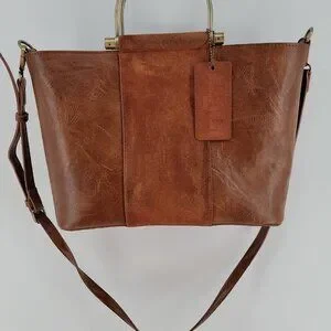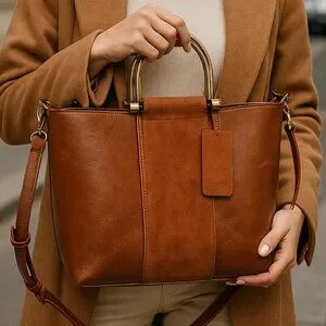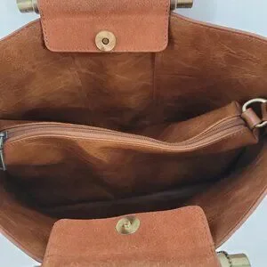๐ฅ Modern Suede + Faux Leather Convertible Tote Bag โ Rich Cognac Brown