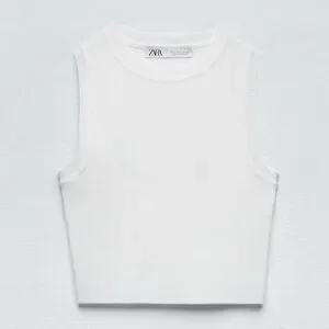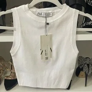 Elegant white knit tank from Zara. Ideal for versatile styling.