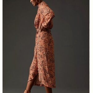 This stunning wrap midi dress from Anthropologie features a timeless classic print and a flattering silhouette that cinches at the waist for an effortlessly chic look. Originally sold with a matching bralette, this listing does not include the bralette. However, the dress can be worn beautifully on its own or paired with your favorite bralette or camisole for a layered look.