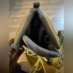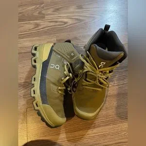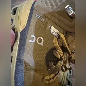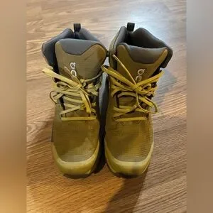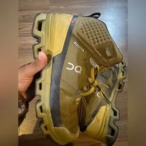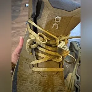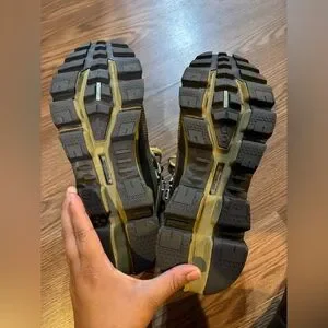 Sleek and durable athletic shoes. Olive and black design. Perfect for outdoor activities.