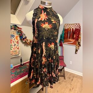 Free People Intimately Black and Coral Floral Mini Dress