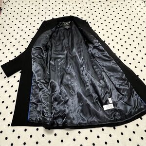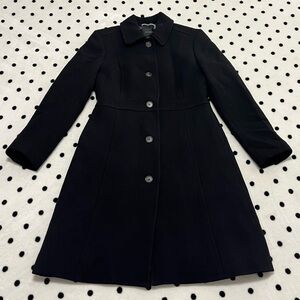 The coat is a women’s size 4 and features a single-breasted, button-down front and princess seams to create its structured look.