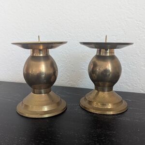 Set Of 2 Vintage Brass Pillar Candle Holders Ball Stem 3.75"