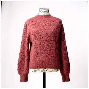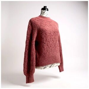 Heartloom Women's Pointelle Balloon Sleeve Pullover Sweater. Blush/Pink. Small
