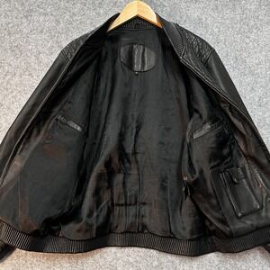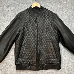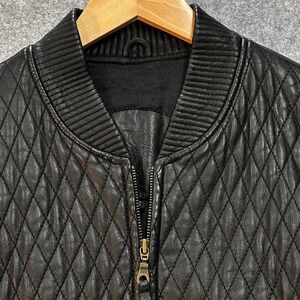 Rosleen Leather Bomber Jacket Mens S Black Quilted Front Full Zip Inner Pockets