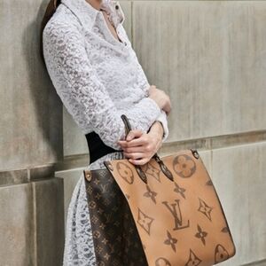 Monogram Giant canvas, the OnTheGo GM tote bag is as striking as it is practical. A Monogram Reverse pattern on the sides and handles creates a stylish contrast in color and scale. With its generous capacity, shoulder straps, and iconic Toron top handles, this versatile GM model is an ideal bag for everyday wear.
