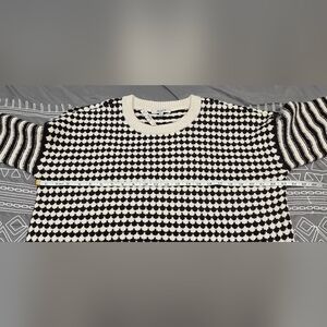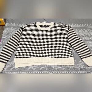 Brand new with tags. Size large. Ivory and dark brown in color. Relaxed fit. Raglan sleeves. Ribbed trim. Hip length. Pullover Crewneck style. Measurements and fabric content listed above in pictures.