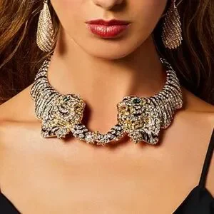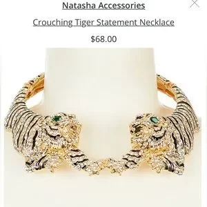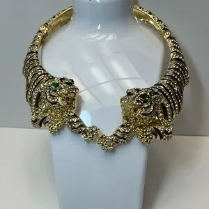 NWT ⚜️🖤⚜️ NATASHA GREEN EYED TIGERS STATEMENT NECKLACE