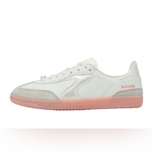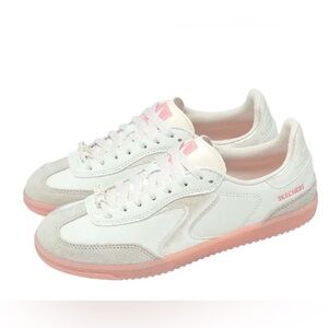 Chic Skechers sneakers with a white and light pink design. Perfect blend of comfort and style.