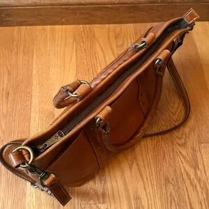 Beautiful brown leather Patricia Nash Carducci tote shoulder bag. Lots of pockets. Zip pocket inside along with slip pockets on other side. Faux suede lining. Removable long strap. Great preowned condition with normal wear to leather and bottom corners. Please review all photos for condition and wear. Any Questions? Leave a comment below!