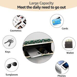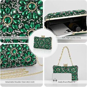 Features: Sparkling rhinestone surface that adds a touch of luxury, with a chic push lock closure for style and security. Includes a versatile detachable chain—wear it as a clutch, shoulder bag, or crossbody depending on your vibe. Perfect size for your phone, keys, makeup, and essentials, making it a glam yet practical choice for weddings, proms, parties, or fancy nights out.