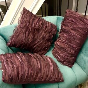 Elegant set of three purple decorative pillows with a textured design. Perfect for adding a touch of luxury to any room.