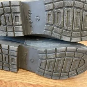 Stylish Chooka rain boots with a playful polka dot pattern. Perfect for rainy days.