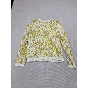 Tahari Sweater Womens XL Cream & Green Floral Hawaiian Print