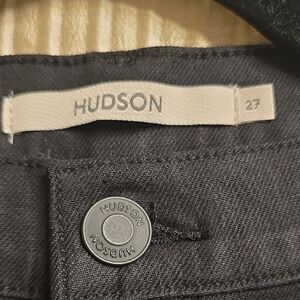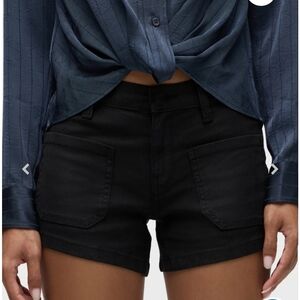 Sleek black denim shorts by Hudson Jeans. Ideal for casual outings. Very soft and comfortable, very stretchy. 44% Lyocell, 29% linen, 25% cotton, and 2% elastane.