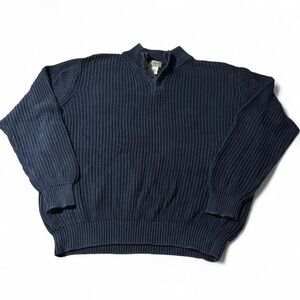 Vintage Y2K L.L. Bean Navy Henley Fisherman Sweater Size Large