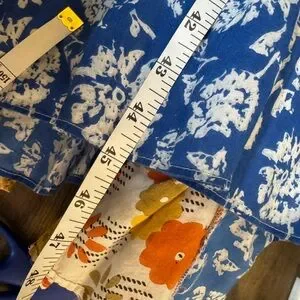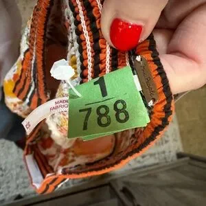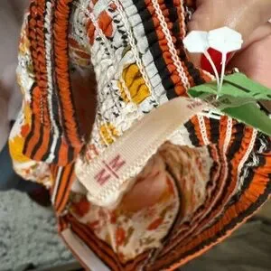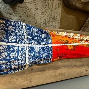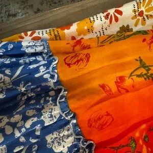 Vibrant strapless dress by Free People. Features bold orange and blue patterns. Perfect for a stylish statement.