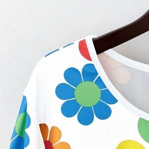 White top with colorful flower power design Red and Bell Sleeve