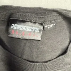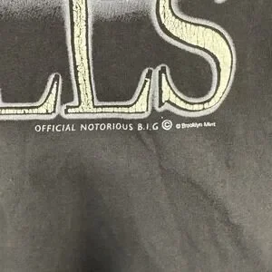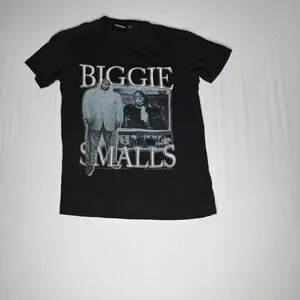 Classic NOTORIOUS B.I.G. black tee featuring iconic Biggie Smalls imagery—a tribute to one of hip hop's greatest legends. Essential gear for rap fans and streetwear collectors alike.