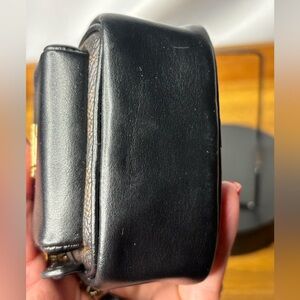 Beautiful Coach mini backpack bag charm/keychain in black leather, walnut signature canvas and gold tone hardware. Two zipper pouches and little straps and brand tag on the back. Color is sold out. New with tags.