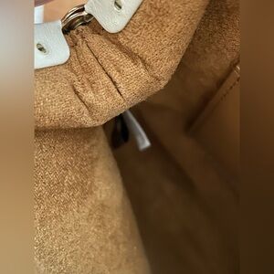 This was a Coach Japan release. White leather cherries print Kisslock bag. Detachable crossbody strap. Gold tone hardware. The Kisslock looks like little acrylic cherries with the golden C’s inside. North/South bag. Brown suede interior has two card slots. Super clean - looks like it was rarely used.