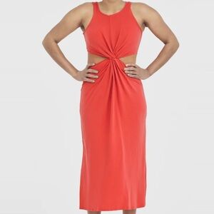 NEW Beyond Yoga Around The World Front Twist Dress in Coral Glow