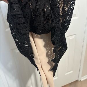 Black lace slip dress with nude lining and adjustable nude straps. Black lace has some sparkle. Worn only once. Black overlay above a nude slip. Adjustable straps Spagetti straps in nude. It doesn’t have any size tag but runs size 8 (M). Look the pictures for measurements.