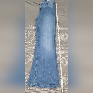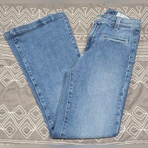 Great condition. Size 23. High waisted. Flare style. Slit front pockets. Medium light wash denim. Measurements and fabric content listed above in pictures.