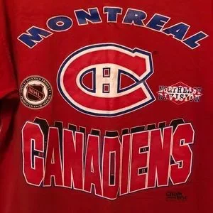 Vintage Montreal Canadiens T-shirt Single Stitch Size Large Chalk Lineq