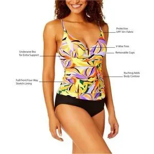 Add a splash of vibrant summer color to your swimwear this season with this fun and flirty Anne Cole Limited Edition tankini top. This colorful tankini top is designed with a triangle silhouette to show off your shoulders and neckline, sure to be a favorite this summer. Featuring removable cups, this top provides versatility and comfort for every wearer while the adjustable over the shoulder straps provide secure support for all water activities. A beach day, or a pool party, Anne Cole Limited Edition swimsuits are high-quality fashion swimwear for ageless women that like to flatter with effortless ease.