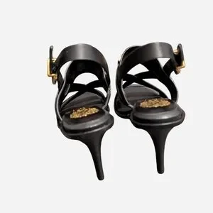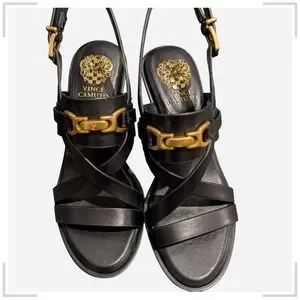 Step out in style with these Vince Camuto black sandals. Featuring elegant gold accents, these shoes are perfect for any occasion.