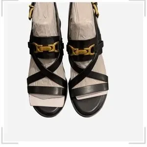 Vince Camuto Black Sandals with Gold Accents